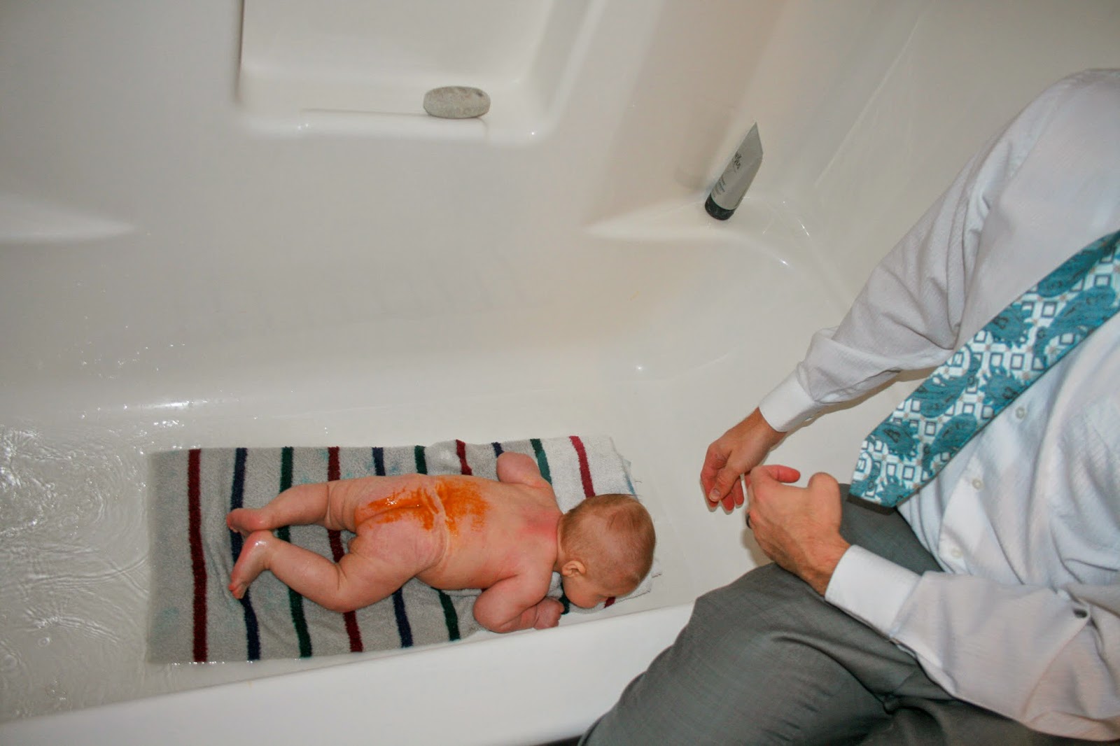 Jeff and Emmett love taking showers! Jeff always startles me when I walk by the bath room and Emmett is popping his head up over the top of the shower :)
